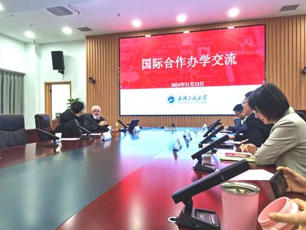 学术报告结束后,国际交流与合作中心、极速赛车 负责人和相关教师与Bill Nimmo教授围绕武汉工程大学与谢菲尔德大学合作办学事项进行交流洽谈。